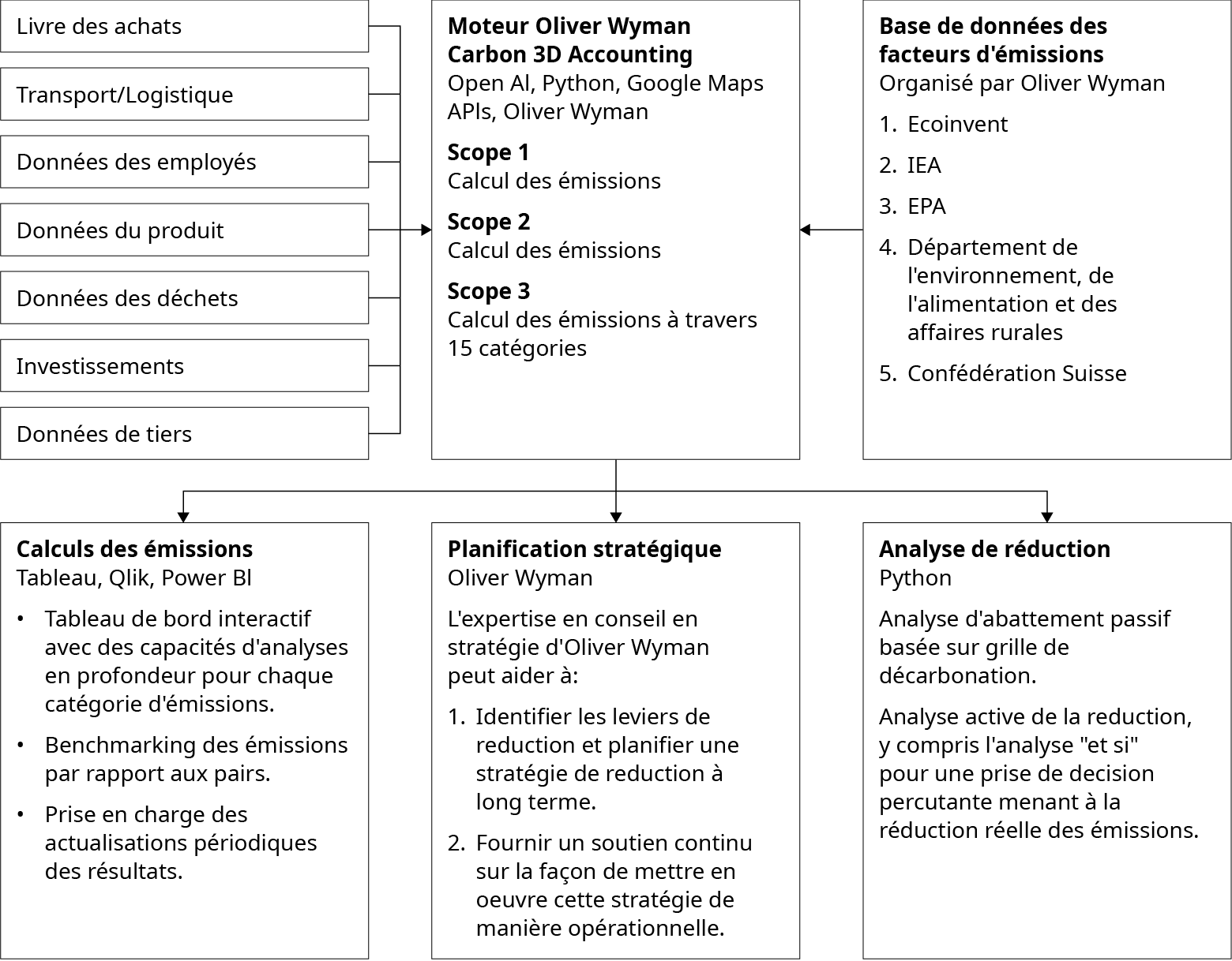 Notre méthodologie intègre une variété d'outils avancés à des sources de données afin de fournir une solution rapide, évolutive et précise pour le calcul des émissions de Scope 3, applicable à tous les secteurs.